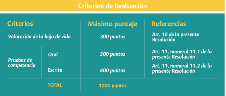 La valoración de las hojas de vida y las pruebas de competencias (escrita y oral), se calificarán atendiendo los criterios establecidos en el artículo 5 del Acuerdo 072 de 2013 del Consejo Académico.