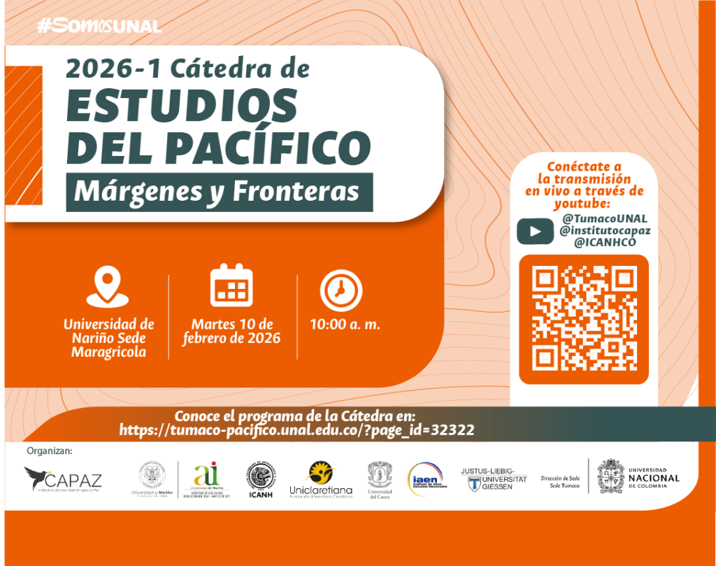 Está en: Inicio / Cátedra de Estudios del Pacífico La Cátedra de Estudios del Pacífico es un espacio académico interinstitucional orientado a la reflexión crítica sobre las configuraciones históricas, sociales y políticasdel Pacífico colombiano. Versión 2025-2 Versión 2026-1